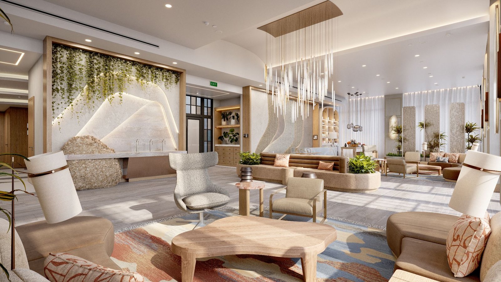 Branded interior renderings developed to finalize design decisions and support internal stakeholder and approval reviews.